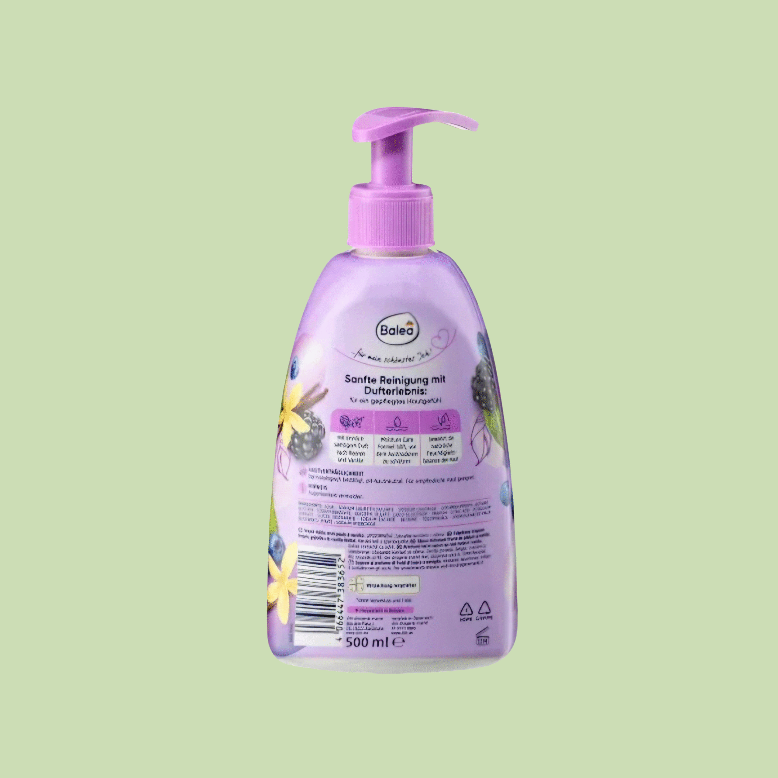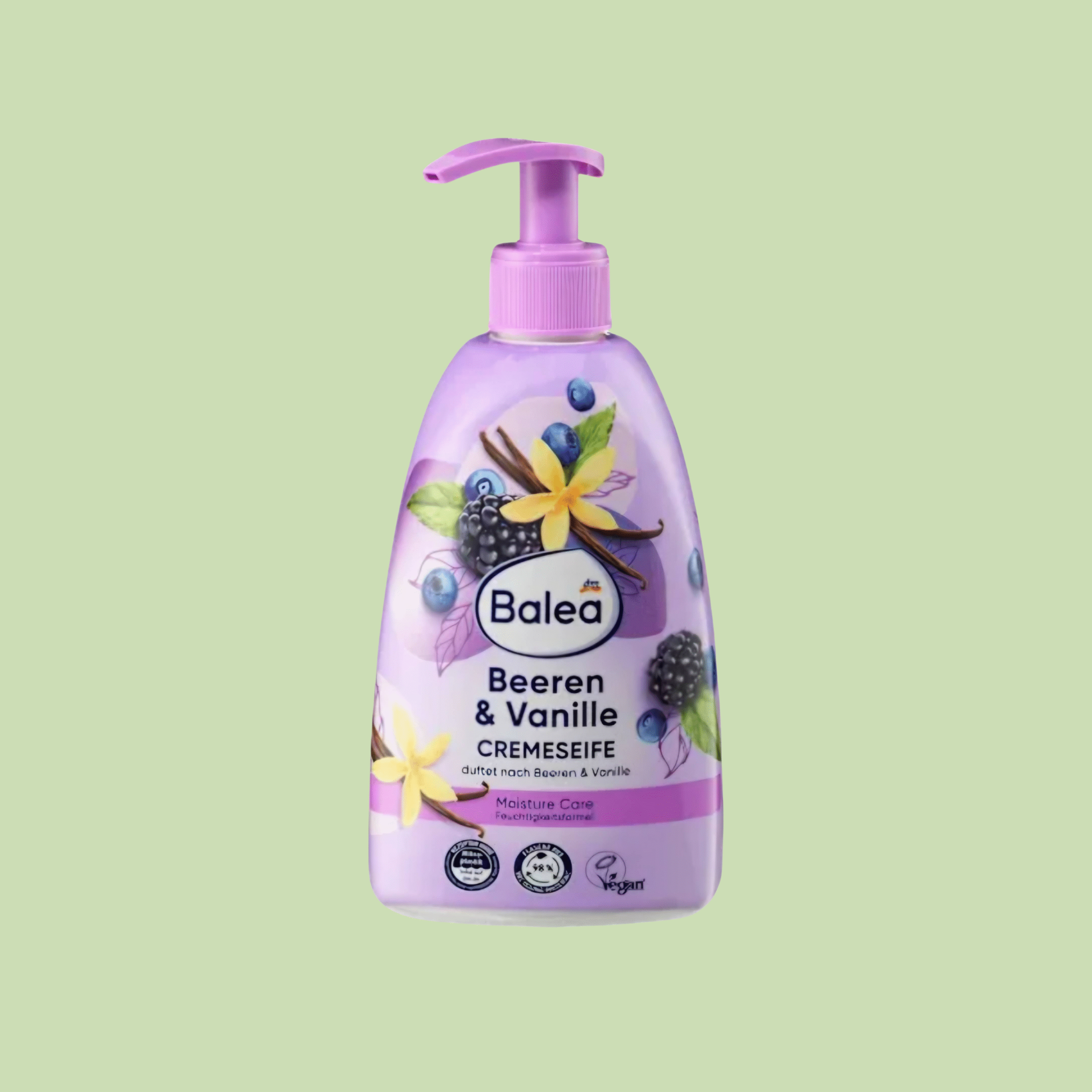 Balea Vedelseep Marjade Ja Vanilliga puhastab käed õrnalt ning jätab naha meeldivalt pehmeks ja niisutatuks. Puuviljane ja magus aroom pakub igal kasutuskorral nauditavat hoolduskogemust.